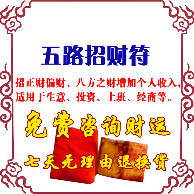 五路招财符的作用就是,改变目前不利的气运,增加转换好气运,增财纳福,消除霉运,使之好运连连。