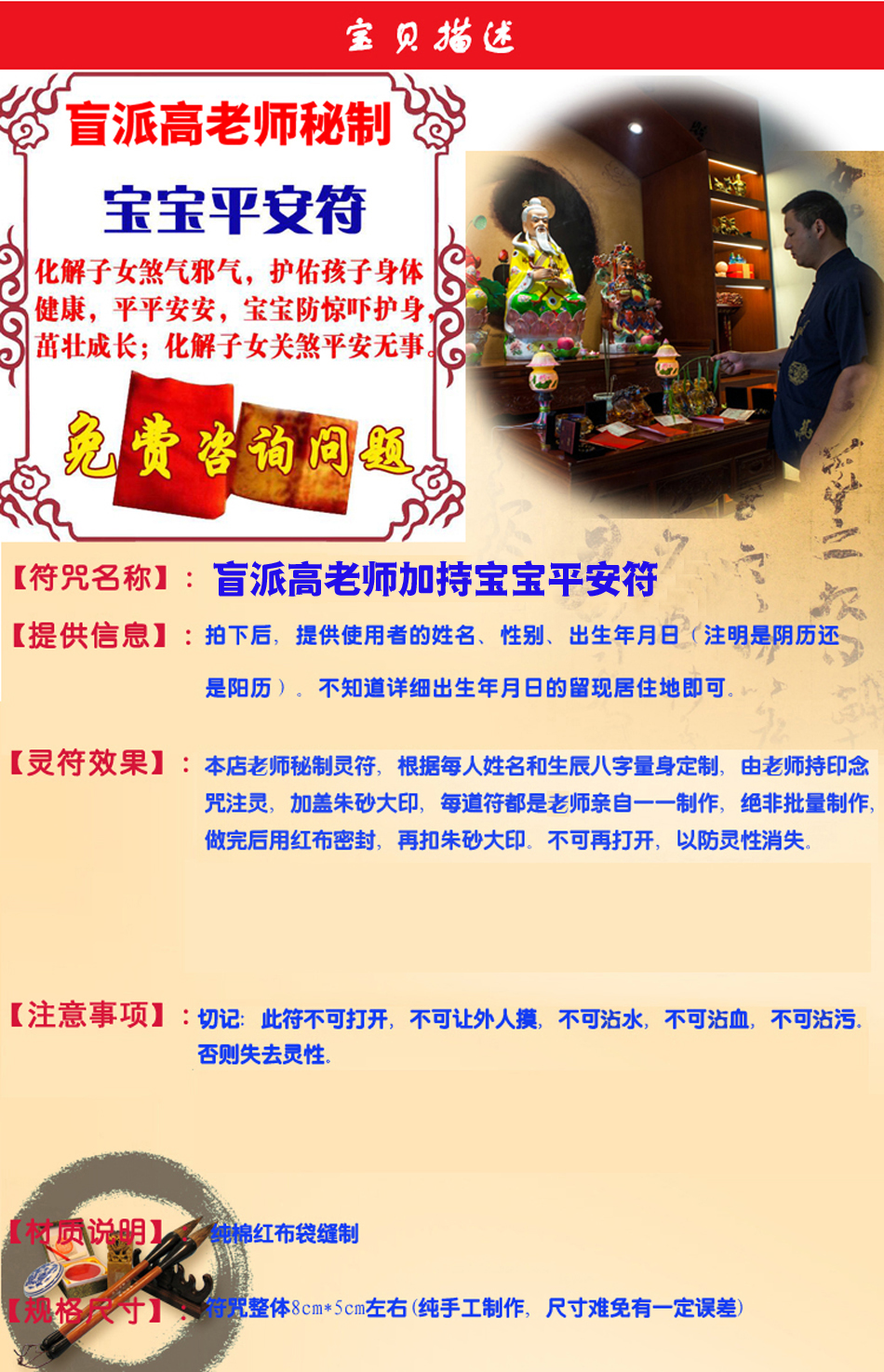 【开运神家】 聚善堂独家秘制 生辰八字宝宝平安符(保宝宝健康平安成长)