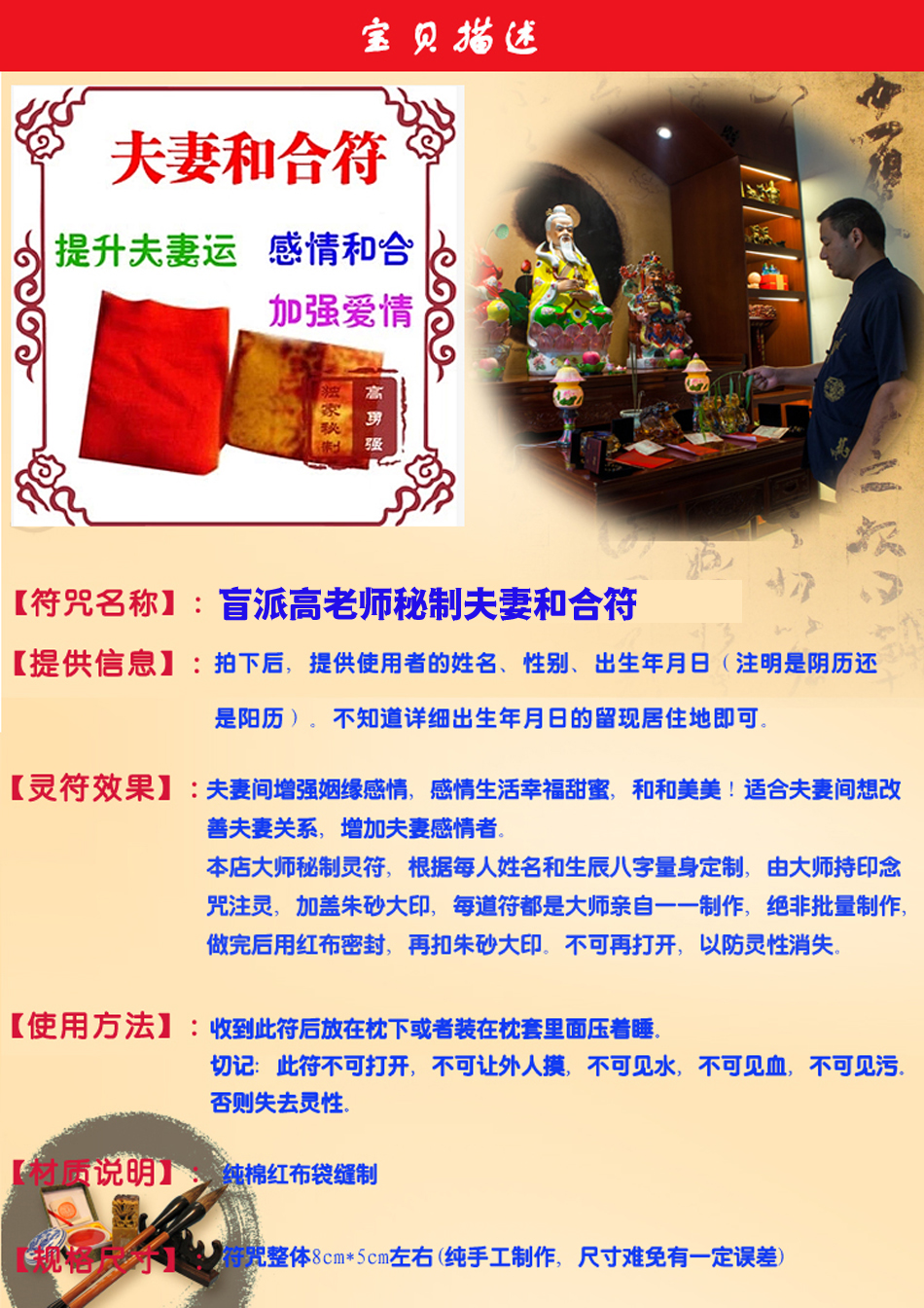 商品属性 [功能] 夫妻和合符 姻缘感情
