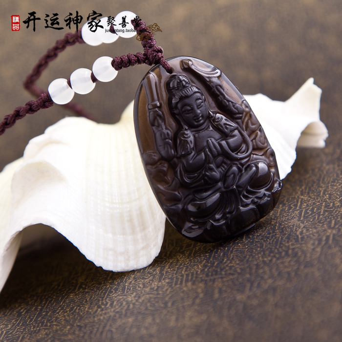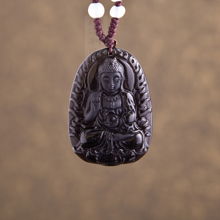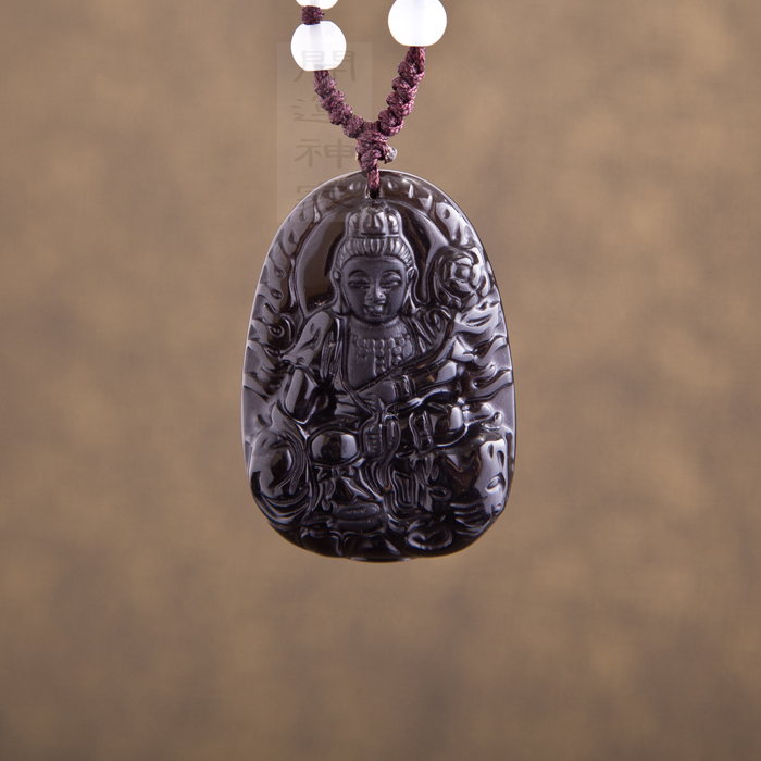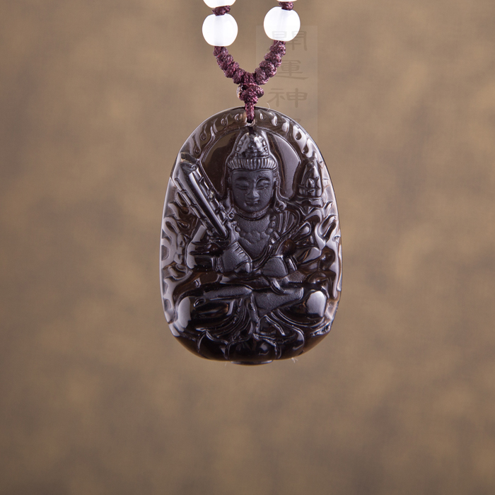 【宝贝名称】开光冰种磨砂黑曜石守护神吊坠 带鉴定证书