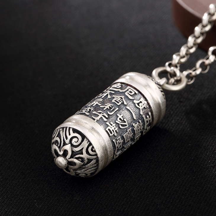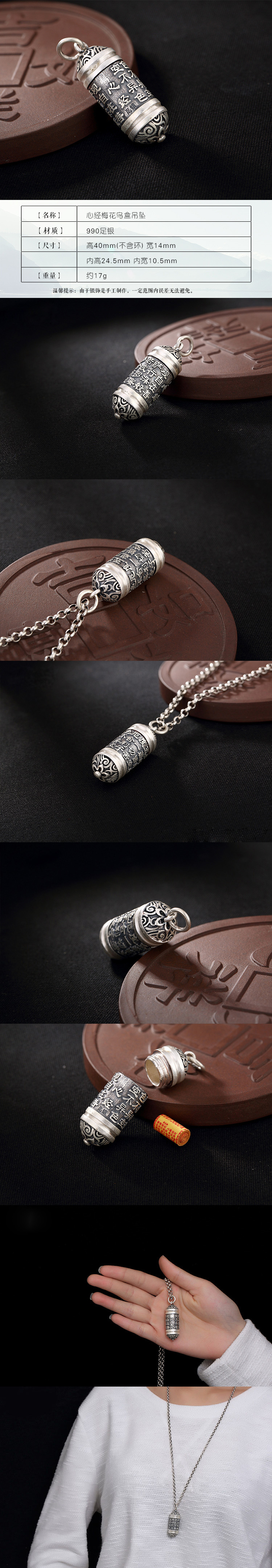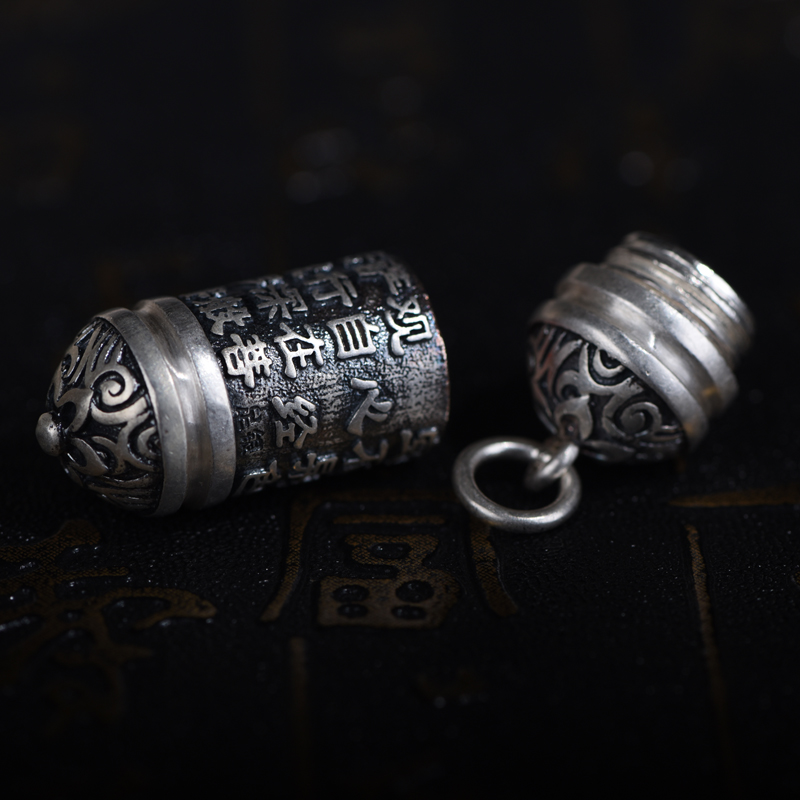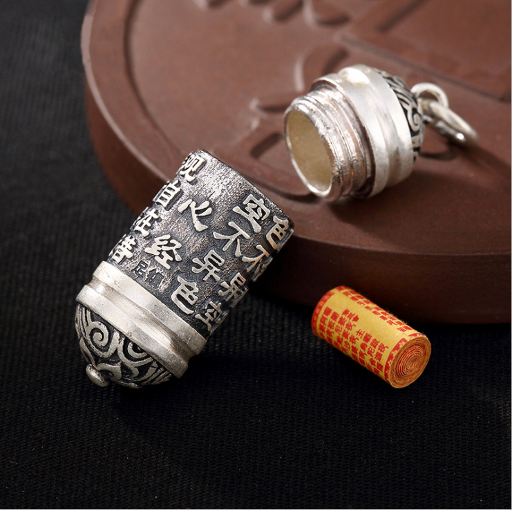 s990足银心经吊坠纯银挂件护身符辟邪 男女项链心经嘎乌盒项坠