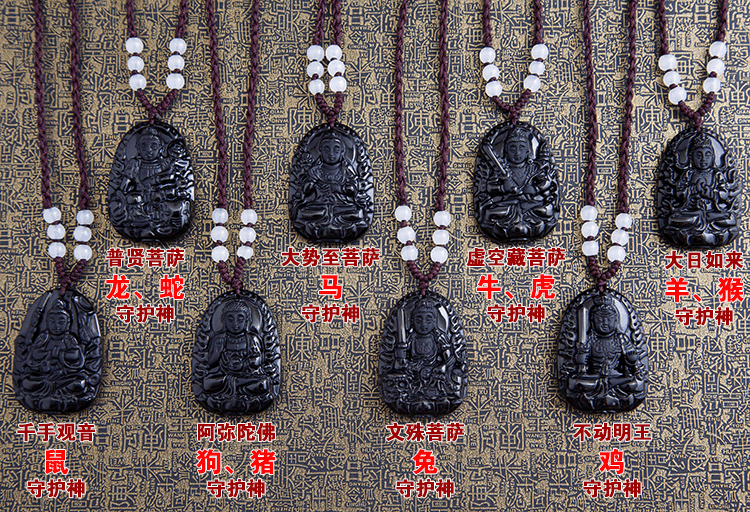 高老师黑曜石八大守护神吊坠辟邪护身保平安