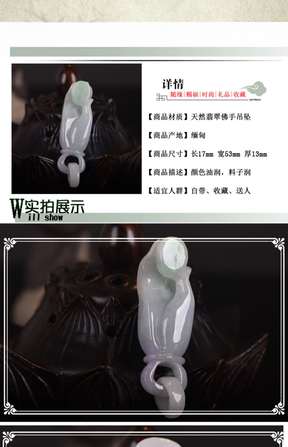 盲派高老师加持翡翠玉佛手吊坠