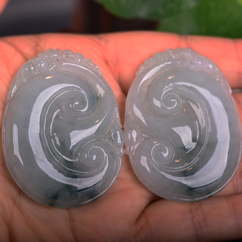 盲派高老师加持翡翠玉如意吊坠项链一对