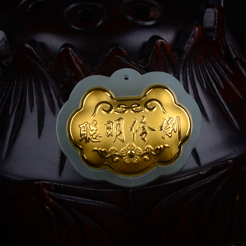 和田玉金镶玉长命锁吊坠