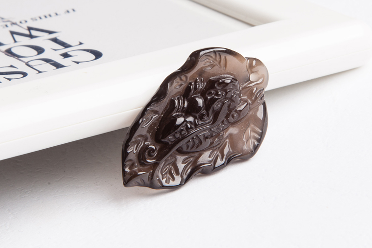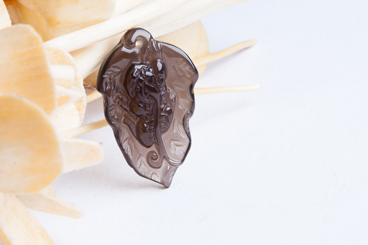 黑曜石树叶貔貅吊坠招财镇宅