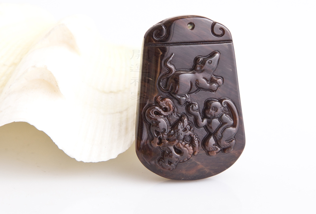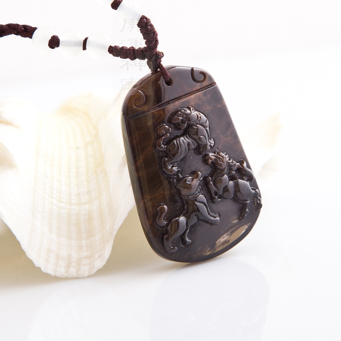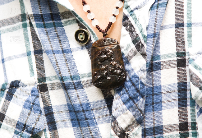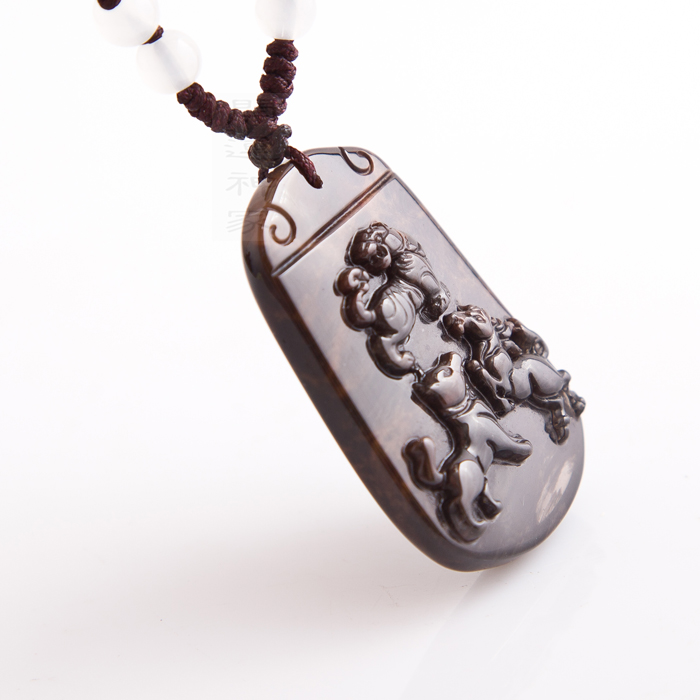 【宝贝名称】聚善堂 大师开光 虎绒黑曜三合开运吉祥物吊坠