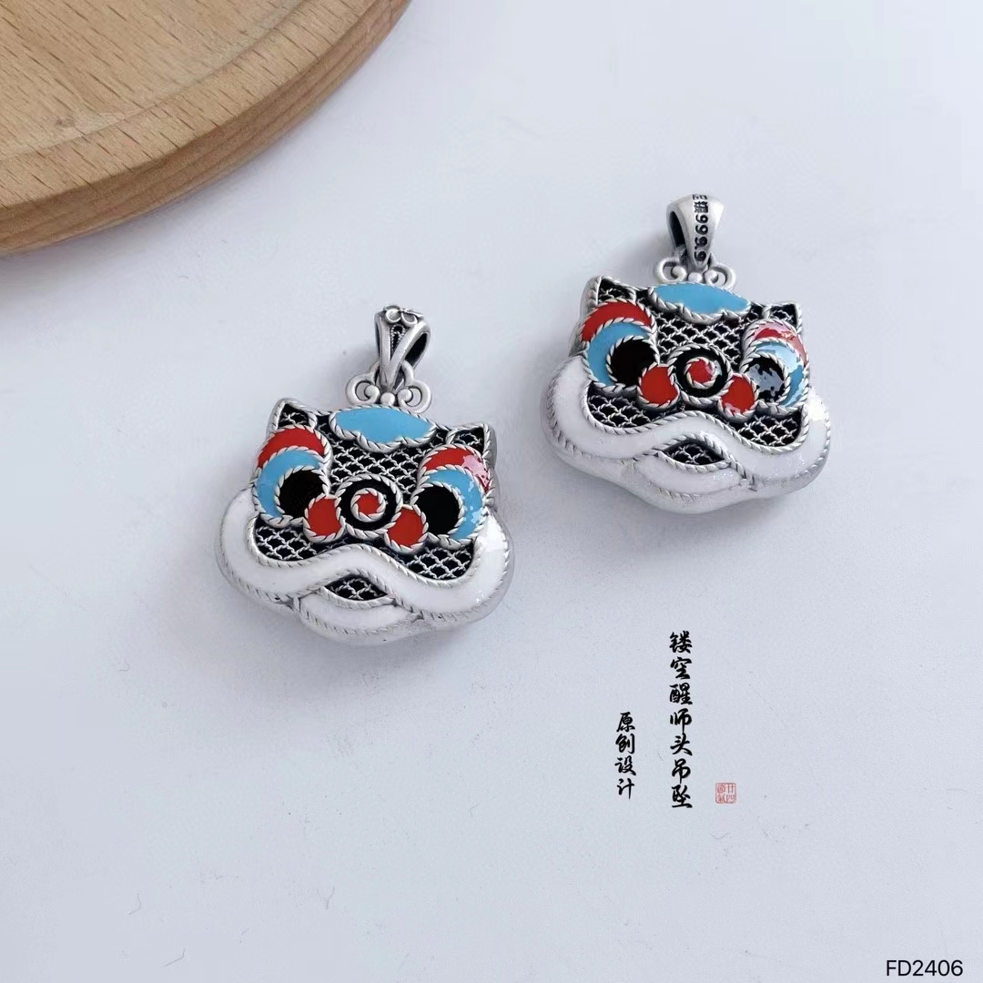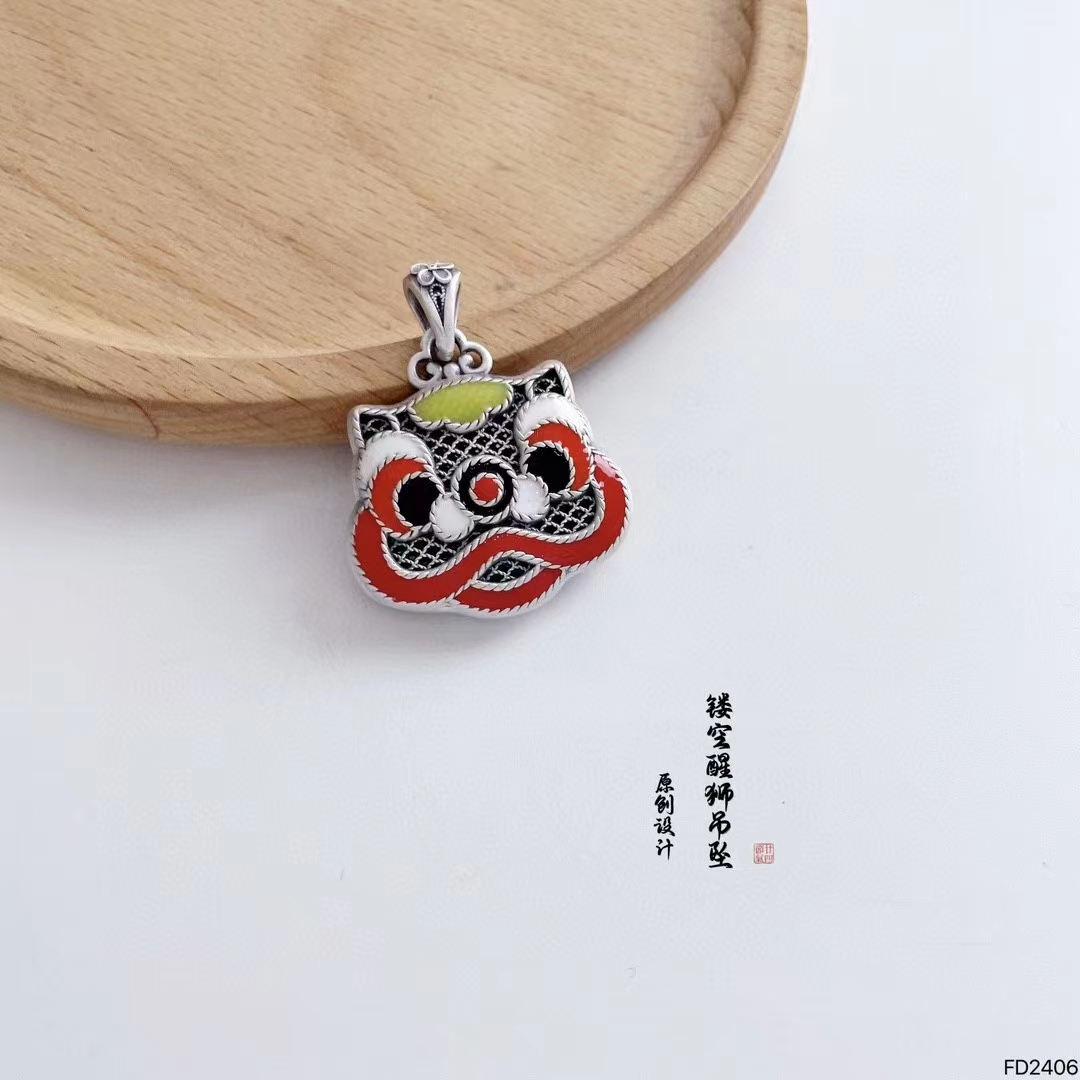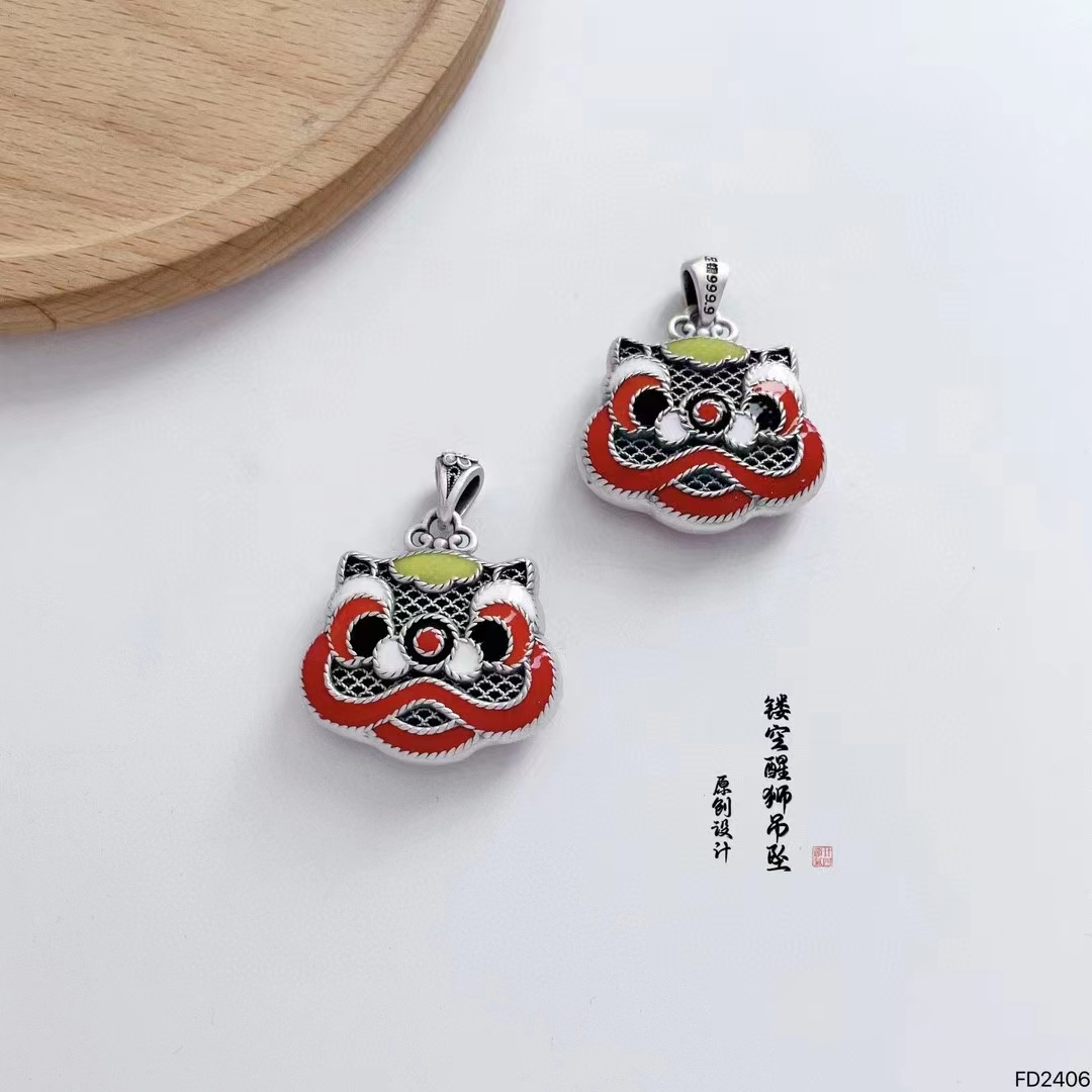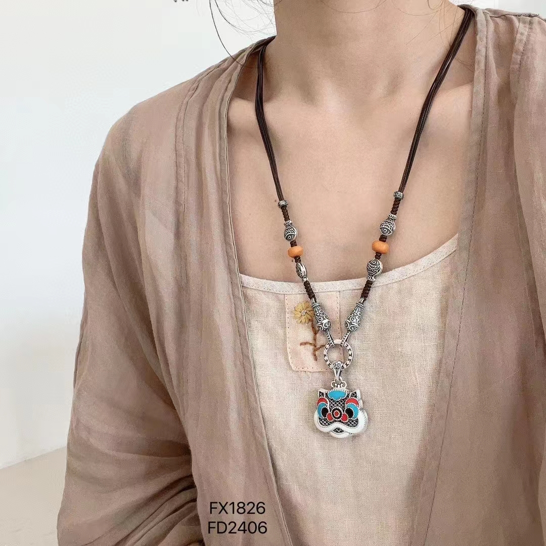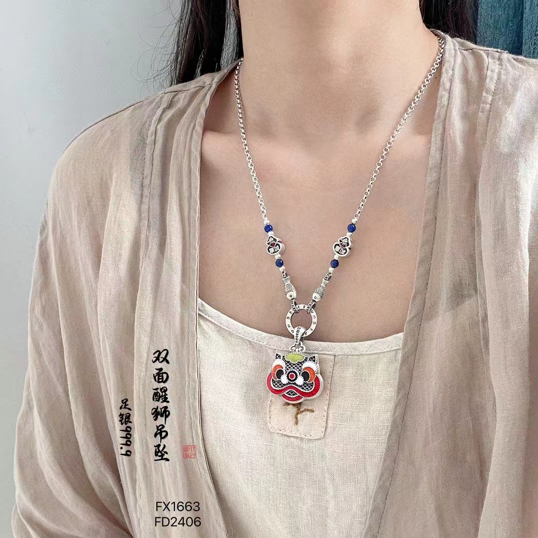 S925纯银项链女生肖国潮吊坠民族风醒狮小众设计感饰品 W