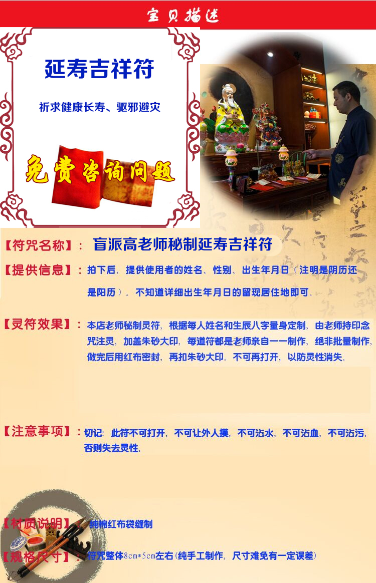 盲派高老师秘制延寿吉祥锦囊