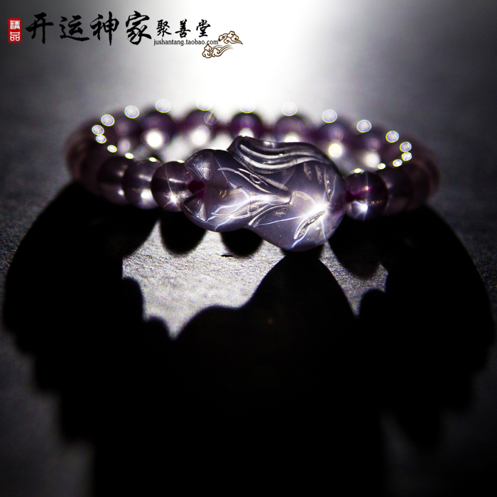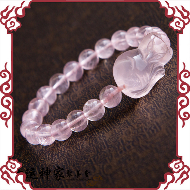 【产品材质】天然星光粉晶珠子+粉晶狐狸