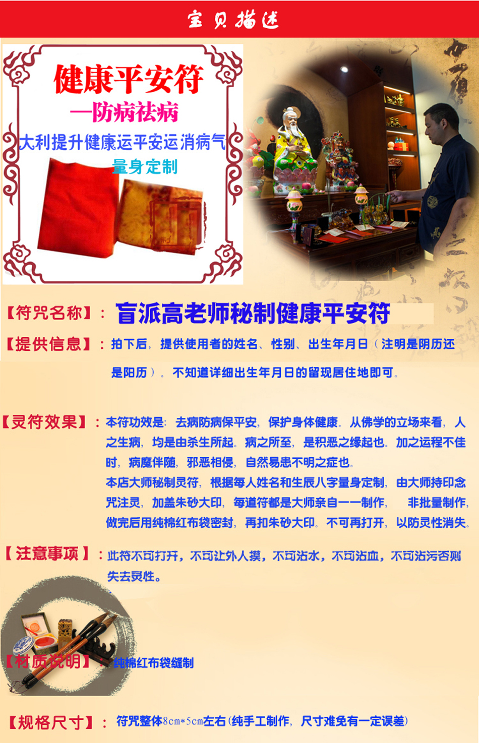 【开运神家】 盲派高老师秘制平安符 高老师健康平安符大利健康平安