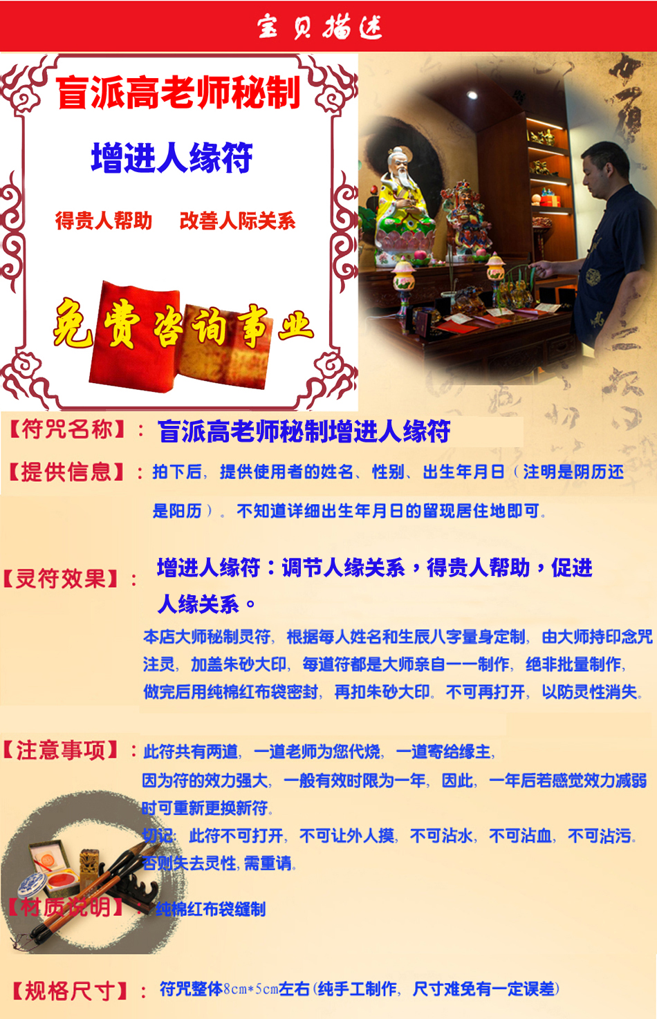 【开运神家】盲派高老师秘制人缘符 改善人缘 改善性格 灵符 改善工作顺利符