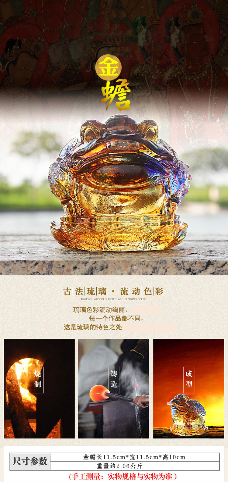 【开运神家】 聚善堂大师招财三足琉璃金蟾摆件 金蝉蟾蜍招财装饰品