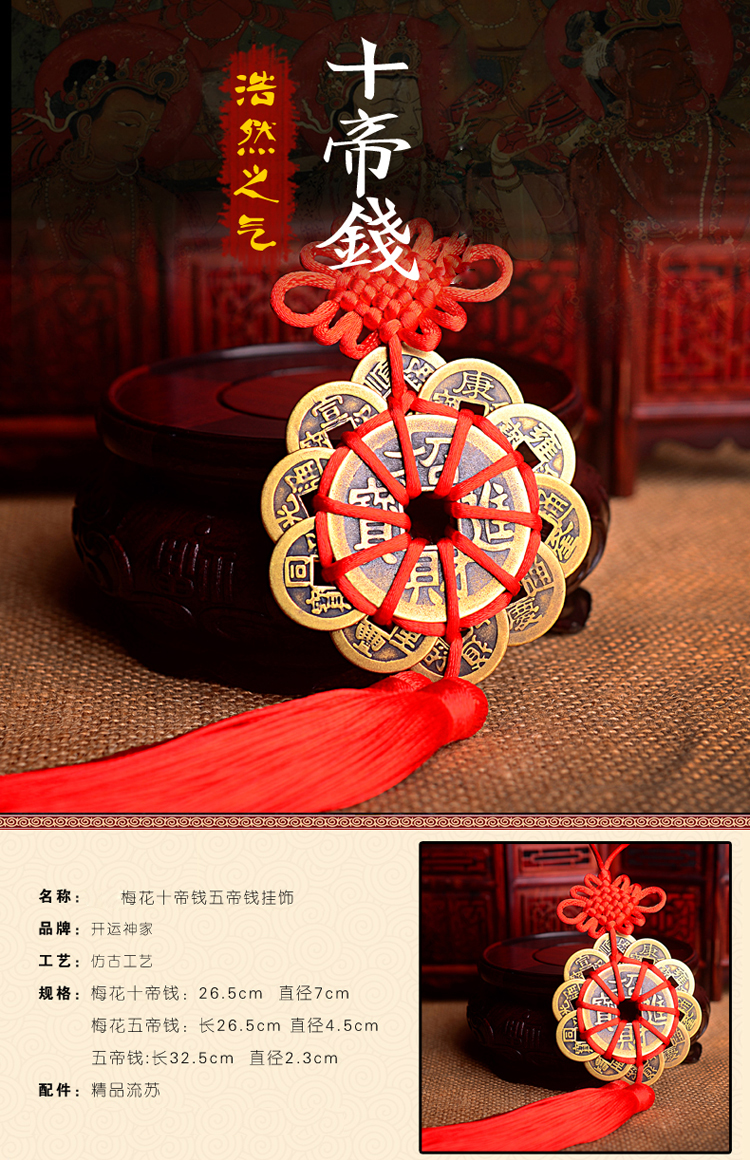 五帝钱真品铜钱镇宅辟邪纯铜十帝铜钱挂件风水招财化煞摆件