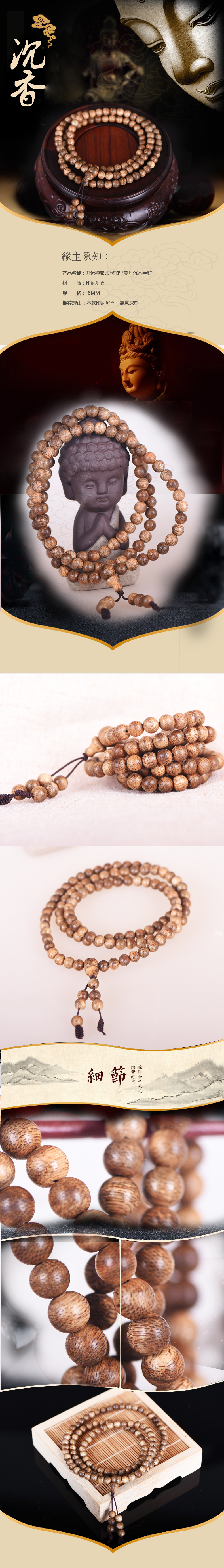 沉香手串108颗加里曼丹老料沉香木佛珠手链念珠6mm